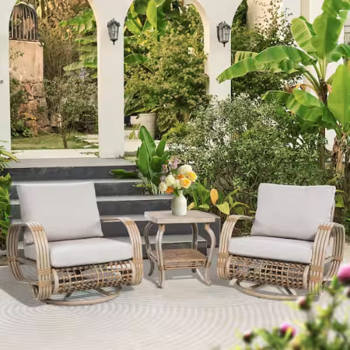 Combining hand-brushed aluminum with elegant wicker accents, this space-saving set offers an intimate seating arrangement that balances lightweight mobility with heavy-duty durability.